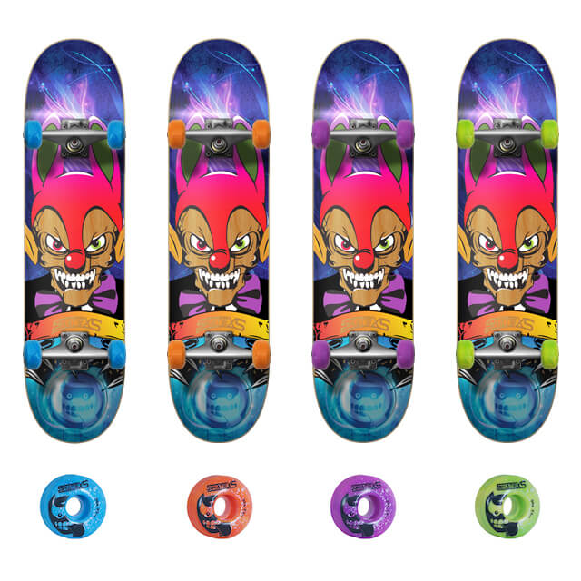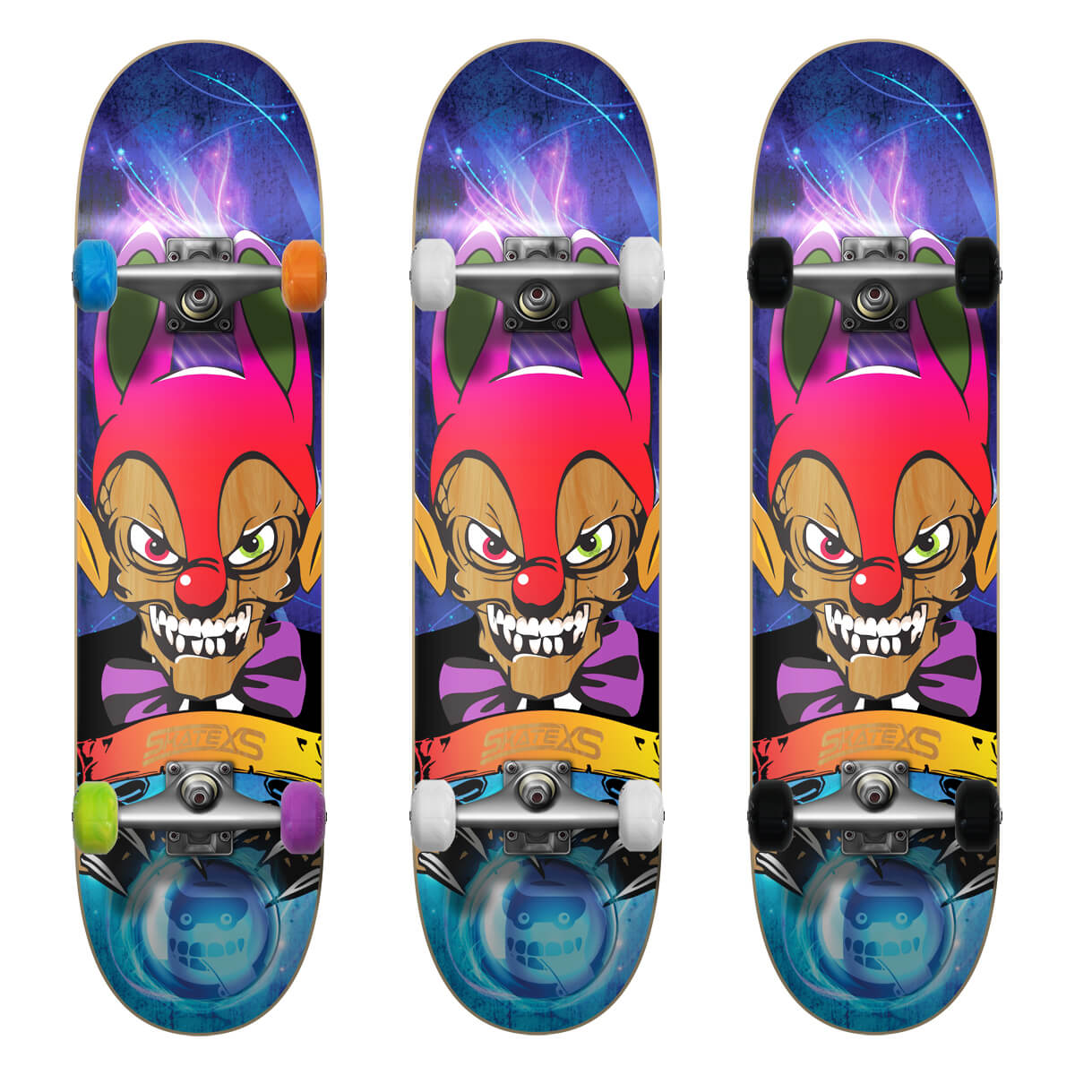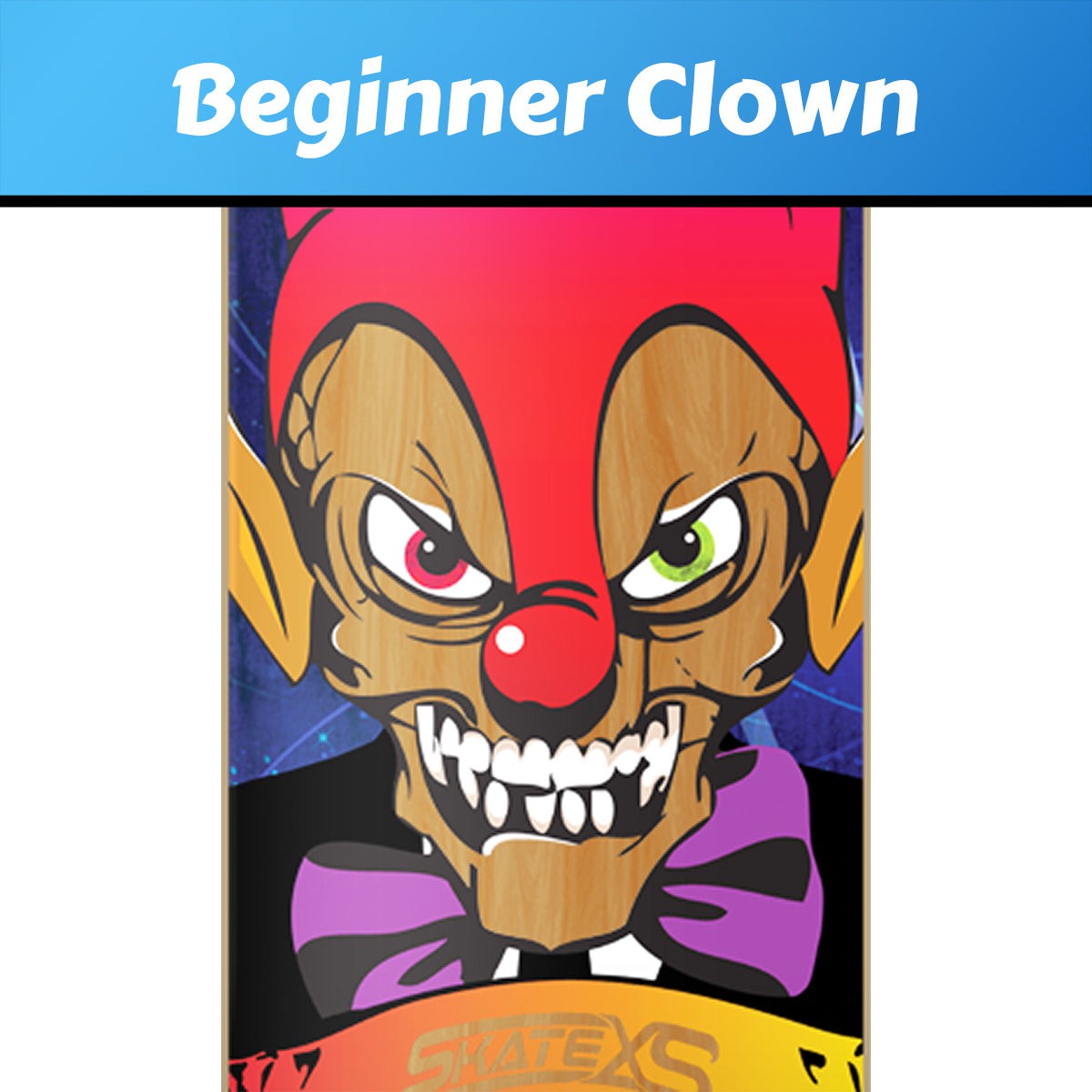 ![]() CLOWN: Limited Edition Intense and Fun Skateboard for KidsBack by popular demand, the SkateXS Clown skateboard is a limited-edition reissue of one of our most intense and exciting designs. With its striking, slightly scary (but well-dressed!) clown, this board is a hit with adventurous kids. It's the most requested design from our SkateXS team members, and works with all grip tape options. The mixed color wheel set adds to the fun, making this an unforgettable board for boys and girls alike. |