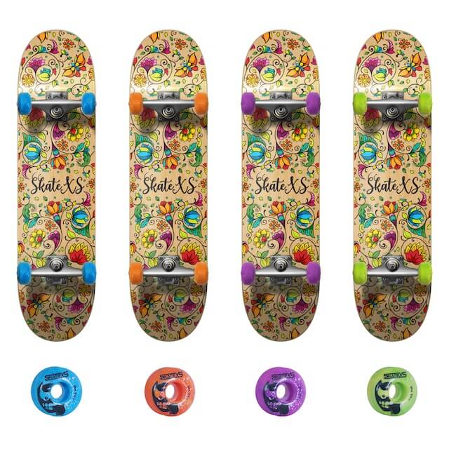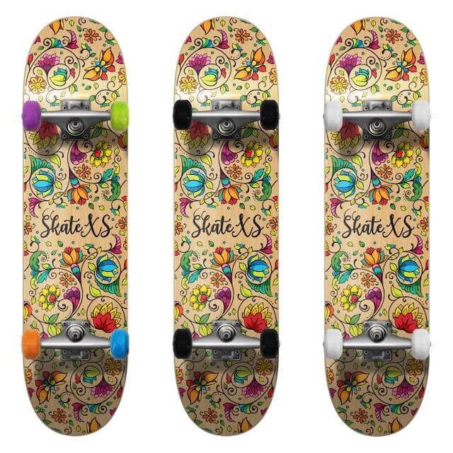 ![]() FLOWERS: Beautiful Skateboard for Girls and BoysBursting with bright oranges, greens, blues, and purples, the SkateXS Flowers kids' skateboard is a tattoo-inspired garden of art. The bamboo veneer background enhances the organic look of the design, with a variety of fanciful flowers and even a few butterflies. This board is a perfect choice for both girls and boys who love a vibrant, nature-inspired design. Pair it with glitter grip tape in silver or pink, and try the mixed color wheels to perfectly complement the collection of bright colors. |