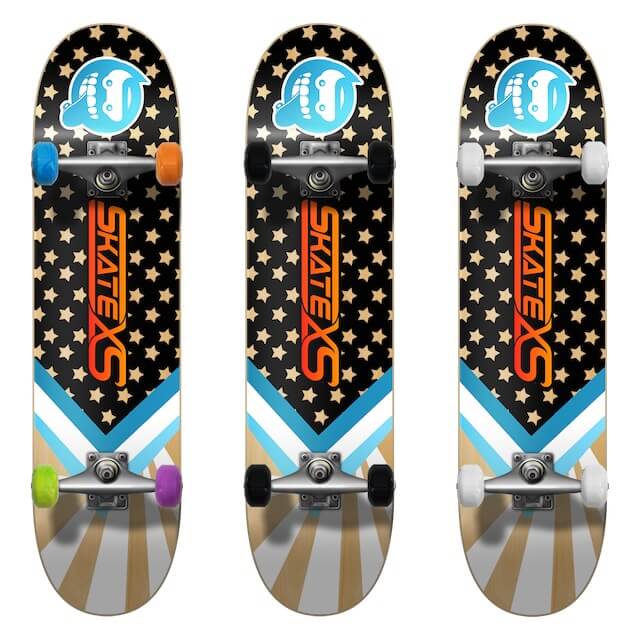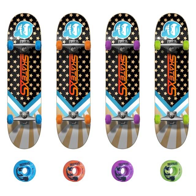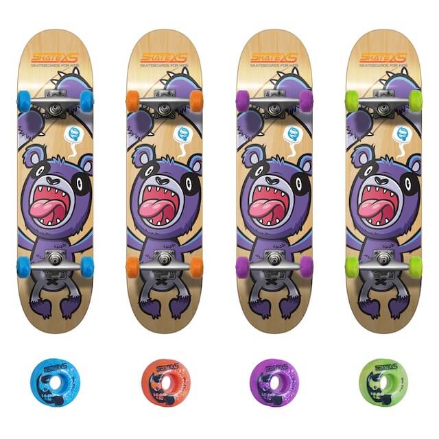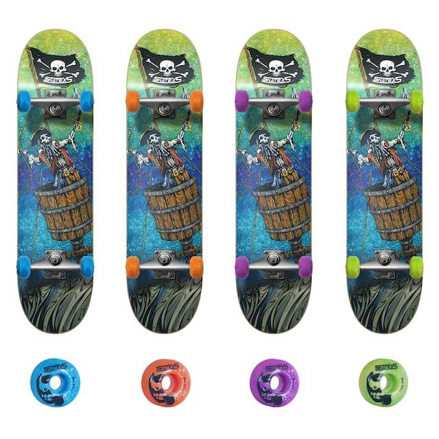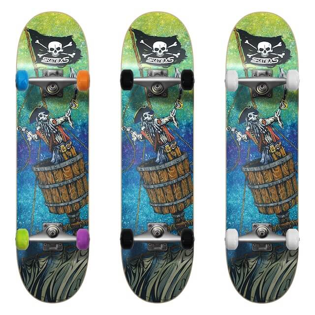 ![]() PIRATE: Cool Skateboard for Kids Who Love AdventureThe SkateXS Pirate skateboard, featuring original artwork from California-based artist David Lozeau, is for kids who want a tough, no-nonsense design. This skateboard is popular with boys and girls who love adventure and are drawn to bold, edgy designs. Camo or black grip tape completes the look, though kids can also lighten things up with mixed color wheels or opt for all green or blue wheels for a more coordinated finish. |