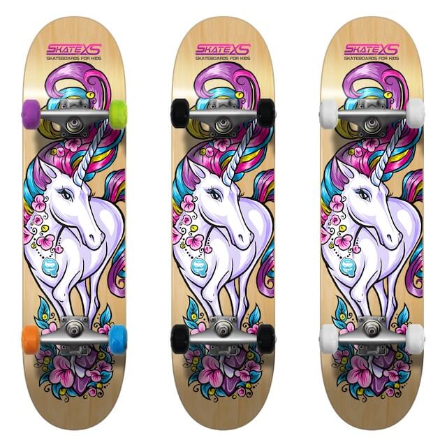 ![]() UNICORN: Elegant and Empowering Skateboard for Girls and BoysCelebrate individuality with the SkateXS Unicorn kids' skateboard, designed with a very feminine yet bold pallet, the vibrant blend of purples, pinks, and blues reflects the confidence, grace, and style of young skaters. This deck goes great with our new glitter grip tape and is most popular with the mixed color wheel set. This skateboard brings beauty and performance together. |